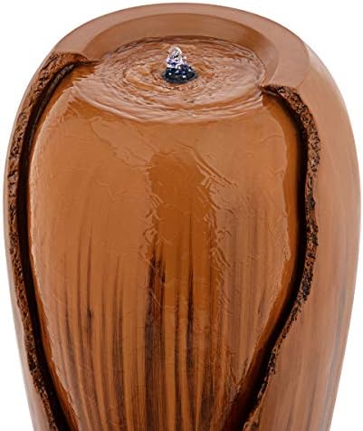 Elevate your outdoor decor with the charming jar fountain . Featuring a cascading waterfall effect with soothing trickling sounds, this fountain adds a touch of tranquility to your space. The antique-inspired design of the brown cracked jar brings a blend of classic elegance and modern style to your outdoor area. Crafted from durable fiberglass and concrete, this fountain is built to withstand rust and harsh weather conditions, ensuring long-lasting beauty. Standing at 15"L x 15"W x 33"H, it fits perfectly in any outdoor setting. Plus, enjoy peace of mind with a one-year manufacturer's warranty from the date of purchase.
