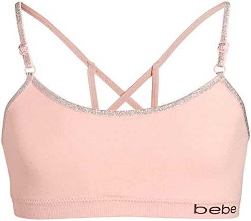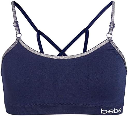 Light-weight Delicate Material, Detachable Pads, and Snug Becoming Seamless Microfiber with Printed Bebe Emblem Elastic Metallic Lurex Trim Element on Bra Band Please Reference the Product Description for Extra Particulars