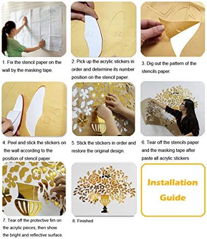 【Household Wall Decor Mirror Stickers】: Manufactured from Acrylic and self adhensive, Include 4 pcs Mirror Tiles, Have to DIY assemble them by the sentcil paper, Peel and stick on the wall, the top will create an attention grabbing wall artwork to your room.