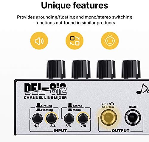 [Ground/Floating Signals Functions] ★Along with mixing indicators from a number of gadgets, DEL-8i2 additionally has stereo/mono, floor/floating indicators, which might course of enter indicators to reduce noise, which aren’t out there in comparable merchandise in the marketplace. The grounding/floating perform helps “1/2” and “3/4” enter.