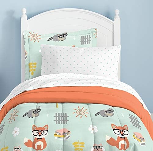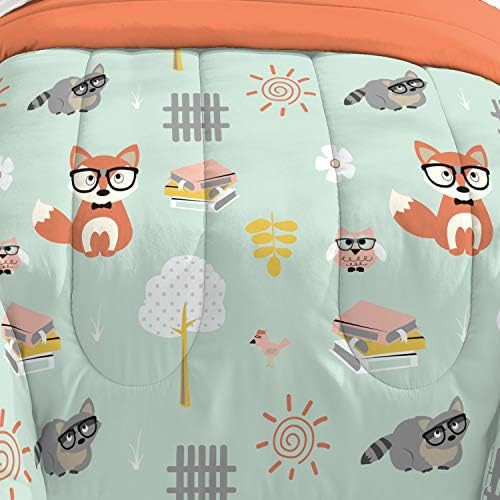 Your baby will love this cute Woodland Associates full bed room ensemble! The extremely tender comforter and sham characteristic cameo cartoon photographs of pleasant woodland forest animals, together with owls, foxes, raccoons and birds on a mint background, all in shades of pink, grey, white, tan and coral. The comforter reverses to a strong coral. A coordinating sheet set showcases mint polka dots on a white floor and is constructed of 100% polyester microfiber cloth. 100% polyester microfiber. Extremely tender and cozy. Polyester fill. Machine wash. Imported. Mattress in a Bag contains: One Twin Comforter (64 in. W x 86 in. L), One Commonplace Sham (20 in. W x 26 in. L), One Twin Flat Sheet (66 in. W x 96 in. L), One Twin Fitted Sheet (39 in. W x 75 in. L x 10 in. pocket) and One Commonplace Pillowcase (20 in. W x 30 in. L).