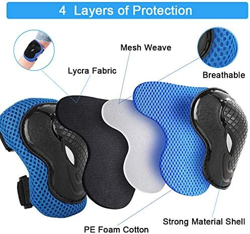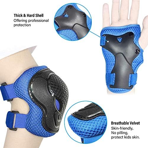 🎁🎁 Good Safety for Your Children — Our safety layers encompass anti-scratch further onerous PVC shell for onerous safety, padded with mushy EVA materials for impression buffering. FOR KIDS/CHILD, the knee elbow pads with wrist guards are designed for teenagers sports activities security safety.