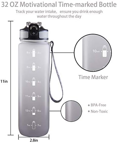Sensible Design: With time markers on bottle, translucent bottle can see your day by day water consumption. Remind you to remain hydrated and drink sufficient water, higher obtain health targets, together with weight reduction, urge for food management, and general well being.