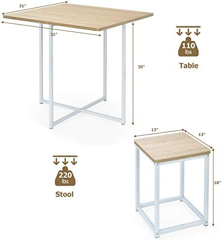 Elegant Look: The set comes with robust loading capability (110 lbs for desk and 220 lbs for every stool). As well as, cross construction on the underside provides additional stability.