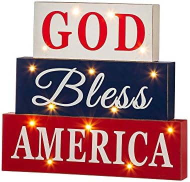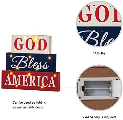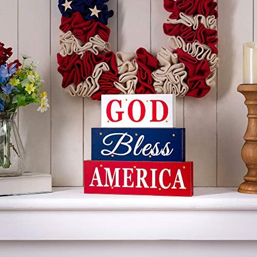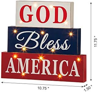 🇺🇸Premium Materials: The patriotic wooden block is manufactured from sturdy MDF, sturdy and long-lasting. The set consists of three items wood block with “God Bless America” lettering, measures 10.75″ L x 1.5″D x 11.75″H and weighs 1.94 lbs.