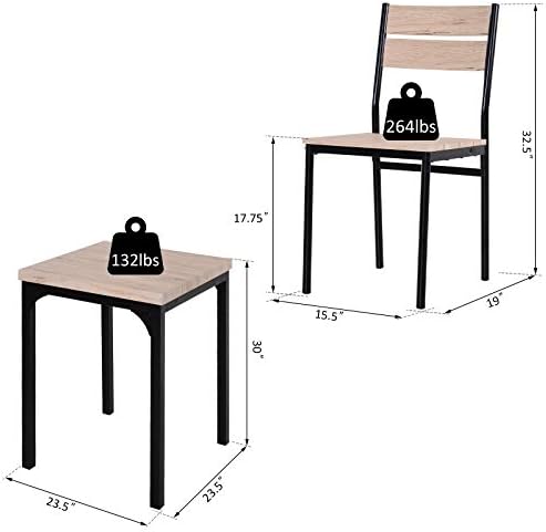 Rustic Industrial model matches with any trendy decorIdeal for small areas corresponding to kitchens, breakfast nooks, and apartments3 items: 1 desk and a couple of matching chairsMatching chairs with slatted excessive backConstructed of MDF board with sturdy metal body for simple maintenanceAssembly required