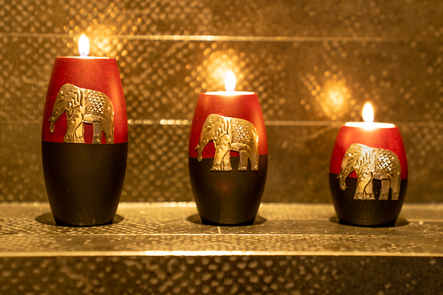 Transform your indoor space with a simple yet captivating upgrade using IYARA CRAFT's exquisite vintage wooden candle holders. Unwind in a cozy atmosphere while infusing warmth and color into your decor with our SET OF 3 WOODEN CANDLE HOLDERS. Illuminate your home with these handmade candle holders featuring a stunning antique elephant design that adds a touch of elegance to any occasion.
