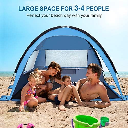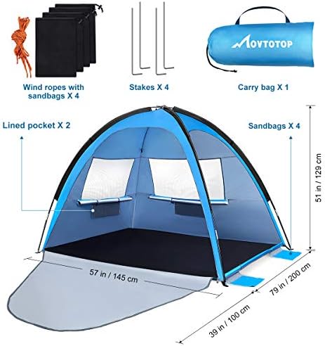⛺ [3-4 People Super Large Space] The open measurement of MOVTOTOP seashore tent is 78 x 57 x 51 inches (L x W x H), massive sufficient to suit 3-4 individuals, offering a spacious inside shelter. In comparison with different seashore tents, our seashore shade is compact and light-weight, which straightforward to fold and pack in a carrying bag, solely 17 x 9 x 4 inches. You’ll be able to put it in a suitcase simply and is the only option for journey and tenting with your loved ones.