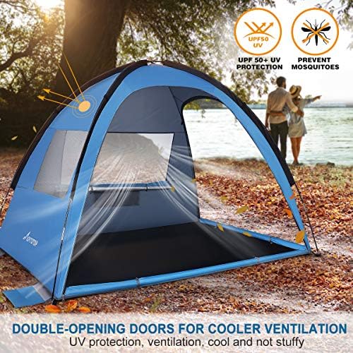 ⛺ [360°Ventilated Design & UPF 50+ UV Protection] Our solar shade with 4-sided air flow design, 2 massive closable mesh home windows and a couple of closable doorways, offering glorious 360-degree air flow, scale back the temperature contained in the tent and dissipation of physique warmth and odor. Perhaps you continue to fear about sunburn on the seashore? Our solar shelter is product of particular eco-friendly, silver coated cloth that successfully blocks as much as 98% of the solar’s dangerous UV rays, offering all-day safety for your loved ones.
