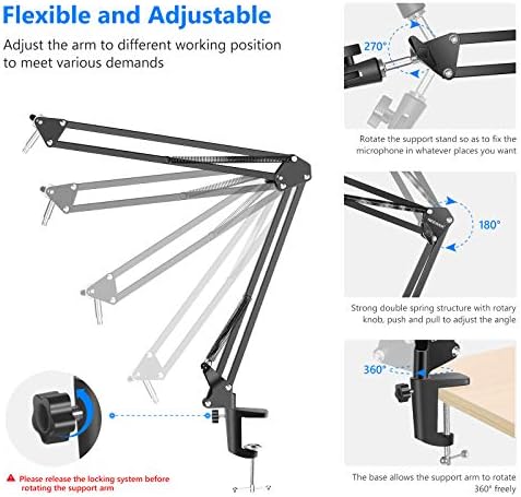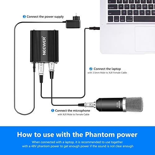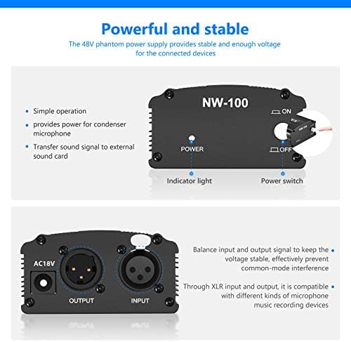 48V PHANTOM POWER SUPPLY AND MIC ARM: Delivers dependable 48V phantom energy for condenser microphone and switch sound sign to sound card. On/off energy change and LED indicator for simple operation; NW-35 Mic Arm Stand with sturdy iron development and cargo capability as much as 53 ounces / 1.5 kilograms, adjustable design present you an acceptable angle to point out voice