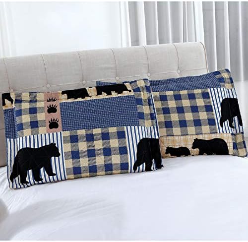 Picket Home Blanket Set:Plaid bear tenting quilt have 2 similar sides.The back and front are the identical sample,all design are blue white bear with paw sample.Whichever sides you select to make use of will make your room distinctive.Excellent for any residence,cabin,lake home,mountain home,cottage,or lodge decor.