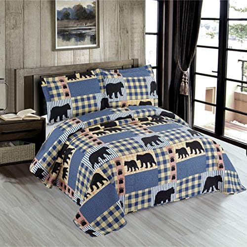 Light-weight Rustic Coverlet Set:Breathable microfiber bear bedspread touched comfortable and cozy,the quilts set is gentle weight and transportable,could be positioned within the bed room at residence or take within the trip.Appropriate for warm summer time evening,additionally can be utilized as bedsheet or blanket in winter,the cabin bear quilts may be very straightforward to maneuver your physique freely when sleeping at evening.