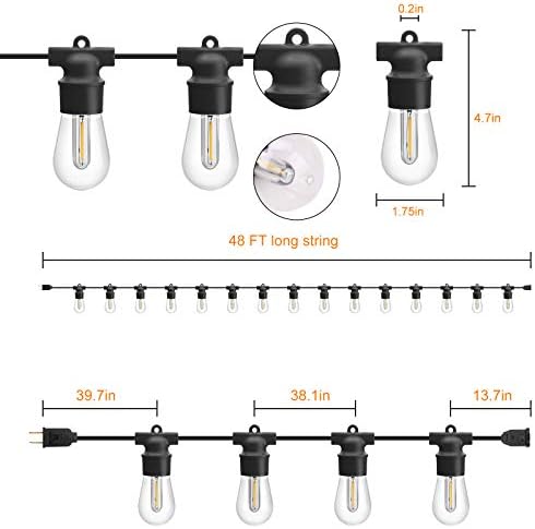【VIDE USE & PERFECT FOR DECORATION】This business grade string mild is appropriate hanging mild decor for patio, porch, pergola, bistro, yard, balcony, gazebo, deck or swimming pool in a nostalgic heat glow mild. Make extra alive romantic atmosphere for you, your loved ones. Perfect for a birthday celebration, household reunion, Christmas celebration, night cocktail celebration, or marriage ceremony reception and different events.