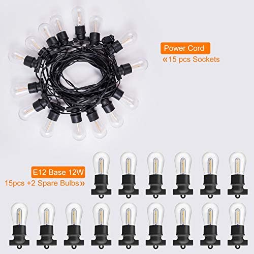 15 x E12 LED Bulbs2 x Spare Bulbs1 x Consumer Manual1 x 48FT S14 String Mild with 15 Sockets