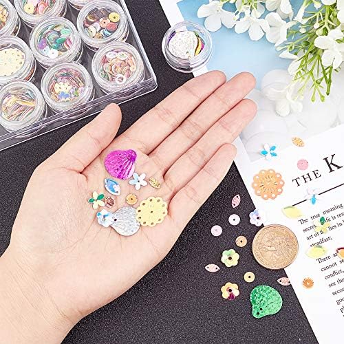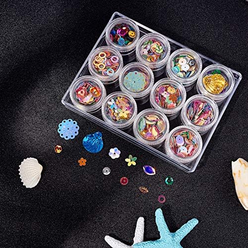 PandaHall Elite 12 Kinds Free Sequins Cup Sequin Iridescent Spangles Flat Beads with Storage Field