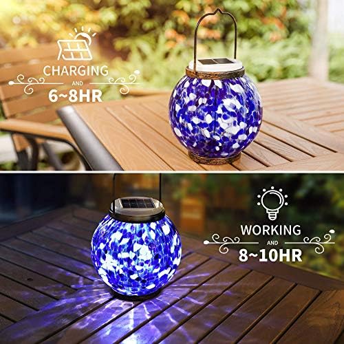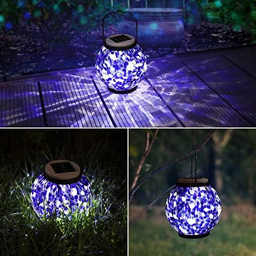 [Gorgeous Design]: The beautiful photo voltaic backyard gentle emit tender blue and white glow at night time and show a vivid fairly sample on desk or floor. The beautiful ppearance makes it extra distinctive for house ornament. Add a heat and nice atmosphere to your yard and bed room..