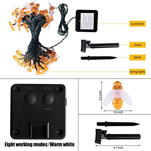Environment friendly photo voltaic bee string lights: The manufacturing unit outfitted refined and 180 diploma adjustable monocrystalline silicon photo voltaic panel plus the inbuilt 800mAh rechargeable battery. When the built-in NiMH battery saves sufficient photo voltaic power within the daytime, the string lights can routinely work for 8-10 hours at evening. It could possibly save electrical energy and cash.