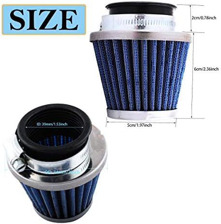 39mm air filter match for 50cc 110cc 125cc 150cc 200cc GY6 moped scooter ATV dust bike motorbike. inside diameter: 39 mm exterior diameter at widest level: 3″(74mm) exterior diameter at high: 2″(50mm)