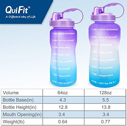 ✅ 1 GALLON LARGE CAPACITY : QuiFit massive capability water bottle(128 oz and 64 oz) allow you to get pleasure from one full water bottle with out having to refill it often,make sure you straightforward to finish your day’s targets.
