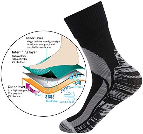 PREMIUM WINDPROOF BREATHABLE SOCKS: The Windproof Mountain climbing Socks are designed with a three-layer building, which handily solves the contradiction between wind-proofing and respiratory properties. Outer: 61% excessive windproof nylon, 32% polyester, 7% elastane;Interlayer: a excessive efficiency light-weight operate of windproof and breathable membrane, Lining: 66% coolmax, 30% polyester,4% elastane.