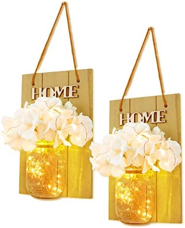 ✅ UNIQUE MASON JAR WALL SCONCE: HABOM’s mason jar hangers present a discreet place to retailer batteries & different equipment.The bundle embrace: 2 pure pine wooden board, 2 mason jars, 2 Silk hydrangea, 2 LED strips (with out batteries).
