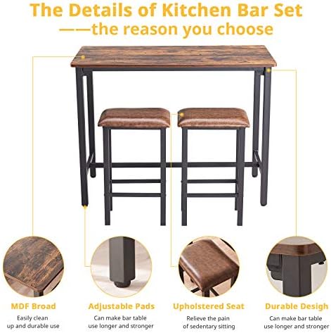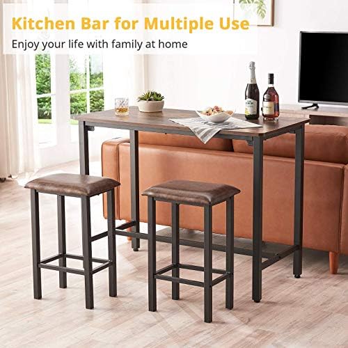 🍻【COMFORTABLE FAUX LEATHER CHAIRS】🍺——3 Piece Eating Set, together with one eating desk with two fake leather-based Barstools, elegant and complicated attraction, offers you, your loved ones and associates essentially the most snug sitting. Hold you steer clear of uncomfortable sitting.