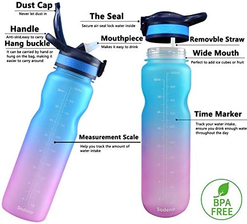 【UNIQUE Time Marker & Capability Scale】With motivational time marker on this bottle, It helps you observe your water consumption clearly and simply, making you drink extra water scientificly. you are nourishing your pores and skin and your physique in every day. Nice for all ages, particularly a will need to have for any health targets together with muscle acquire,weight reduction, replenish moistureand total well being.