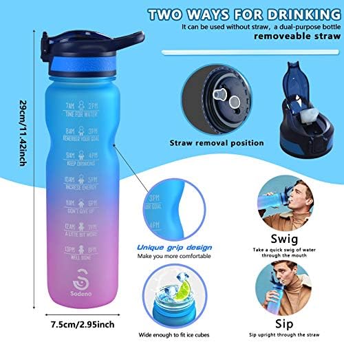 Function with a silicone straw, number of methods to drink water that you just’re used to, corresponding to simply consuming by straw from such massive bottle , or take away it to drink with large mouth, small mouth, permits you to take pleasure in spill-proof sipping or quick water circulation. The mouth is large sufficient to suit ice or fruit cubes, it additionally straightforward to wash.