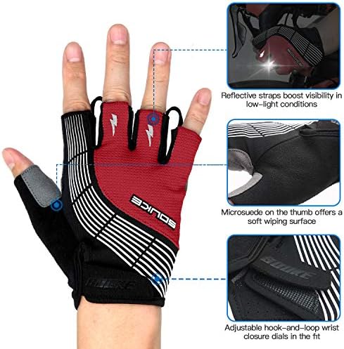 【PERFORMANCE FEATURES】These mens bicycle gloves provide lots of the options present in costlier gloves.The Velcro closure ensures an excellent match and Two finger loops and a pull tab on the underside make for simple removing.★Wiping floor on thumb helps clear sweat out of your forehead mid-ride. And a number of reflective element enhance your visibility to motorists in low-light situations.