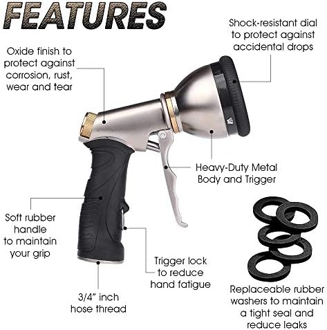 💦9 SPRAY PATTERNS: Select from jet, full, soaker, mist, flat, vertical, angle, cone, and bathe spay patterns to satisfy any and all your watering wants. The adjustable settings present quite a lot of water pressures for every part from patio cleansing to misting delicate flowers in your backyard.