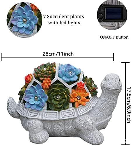This hand-painted turtle has a stone-like look and complicated element. This charming turtle is an ideal helper to your outside ornament, and its housing has seven coloured synthetic melet crops. There’s a small gentle within the middle of every succulent, and it will likely be robotically lit at evening.