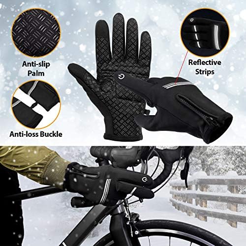 Windproof & Water Resistant: Winter touchscreen gloves that specifically made for outside sports activities can hold your arms heat and make your fingers good and toasty. The outer layer of the biking gloves is made from 140G polyester swimwear material, windproof and water-resistant. The waterproof double-layer zipper on the wrist could be adjusted to suit the scale of your arms comfortably. ATTENTION: The gloves are solely waterproof and can’t be used underwater or in heavy rain.