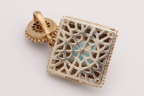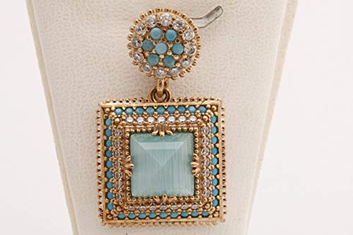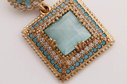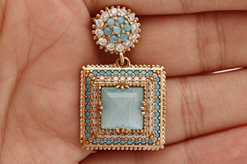 Stone : Cat’s Turquoise, Topaz. Stone Shade : Aqua Weight : 9.3 grams Dimension : 1.38 inch diameters Materials : 925 Okay Sterling Silver and Bronze Manufacturing : Totally Handmade
