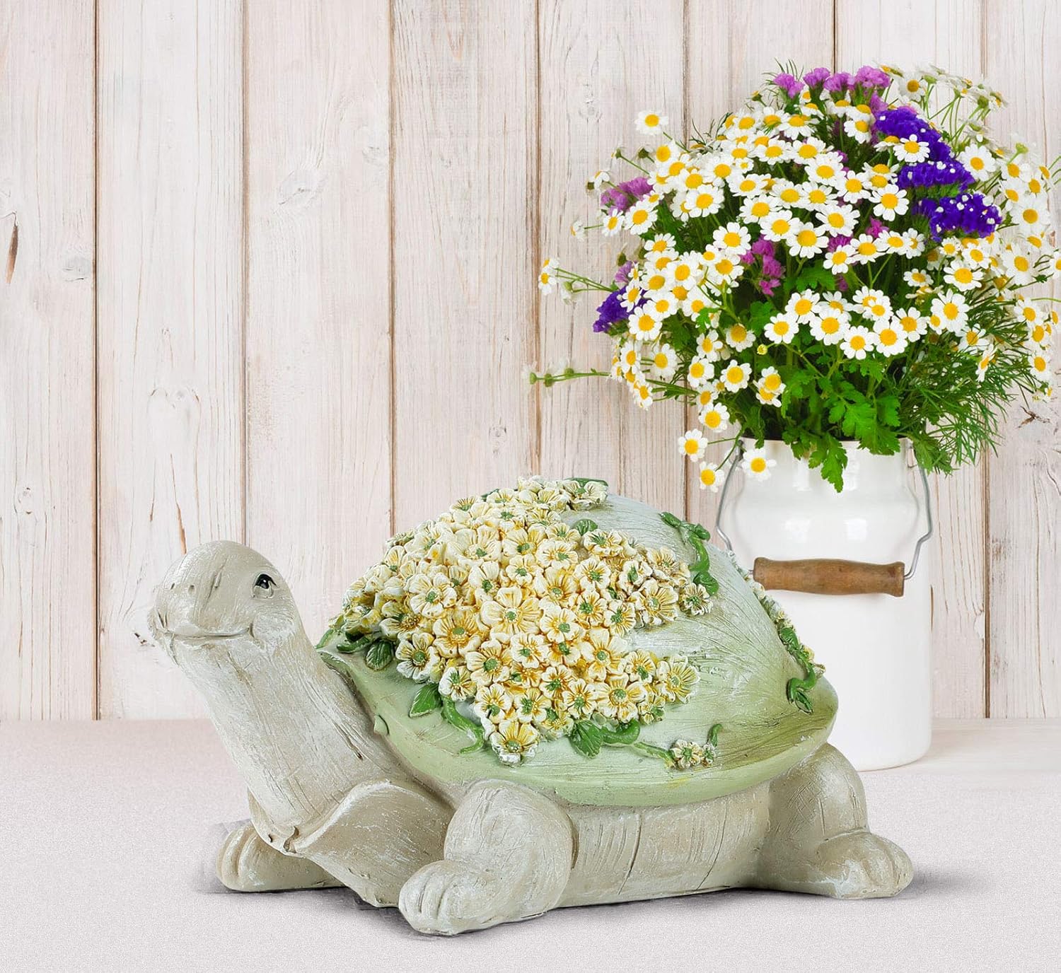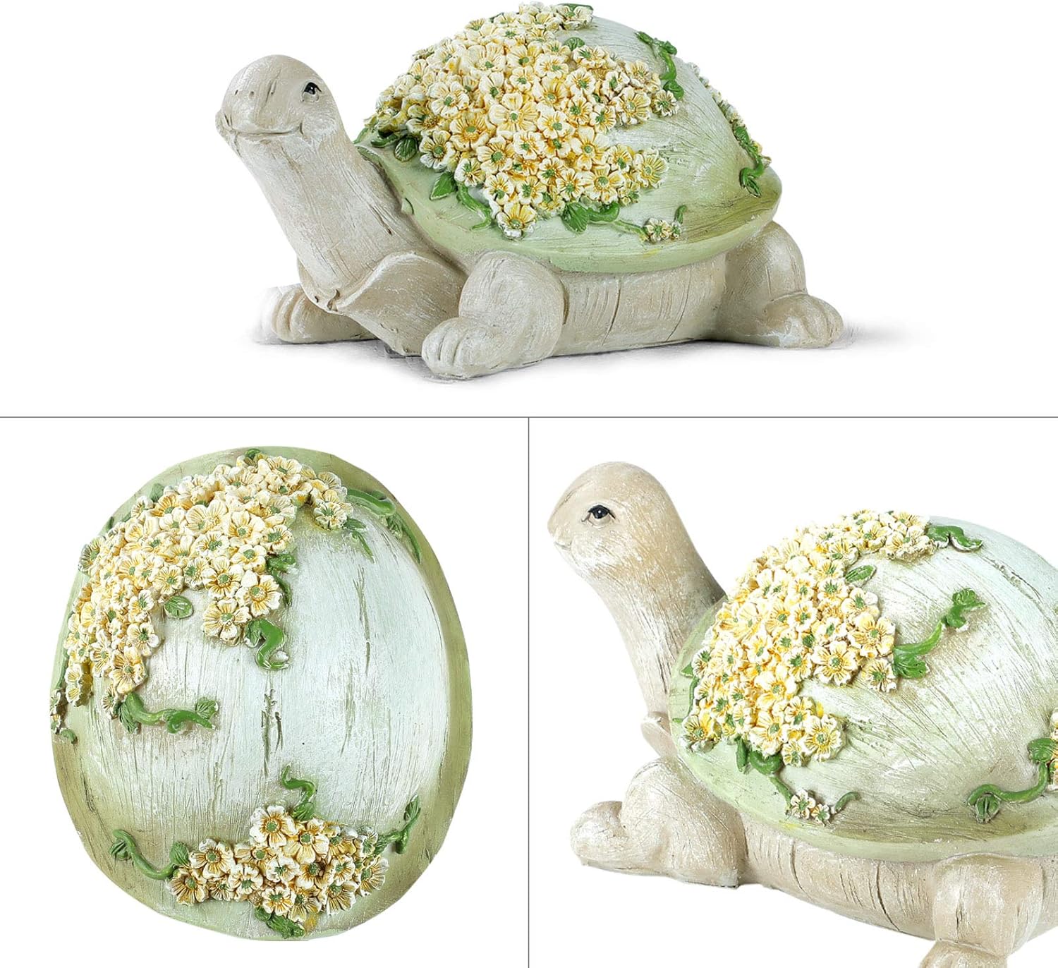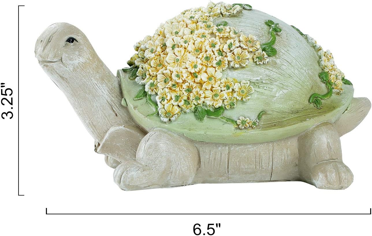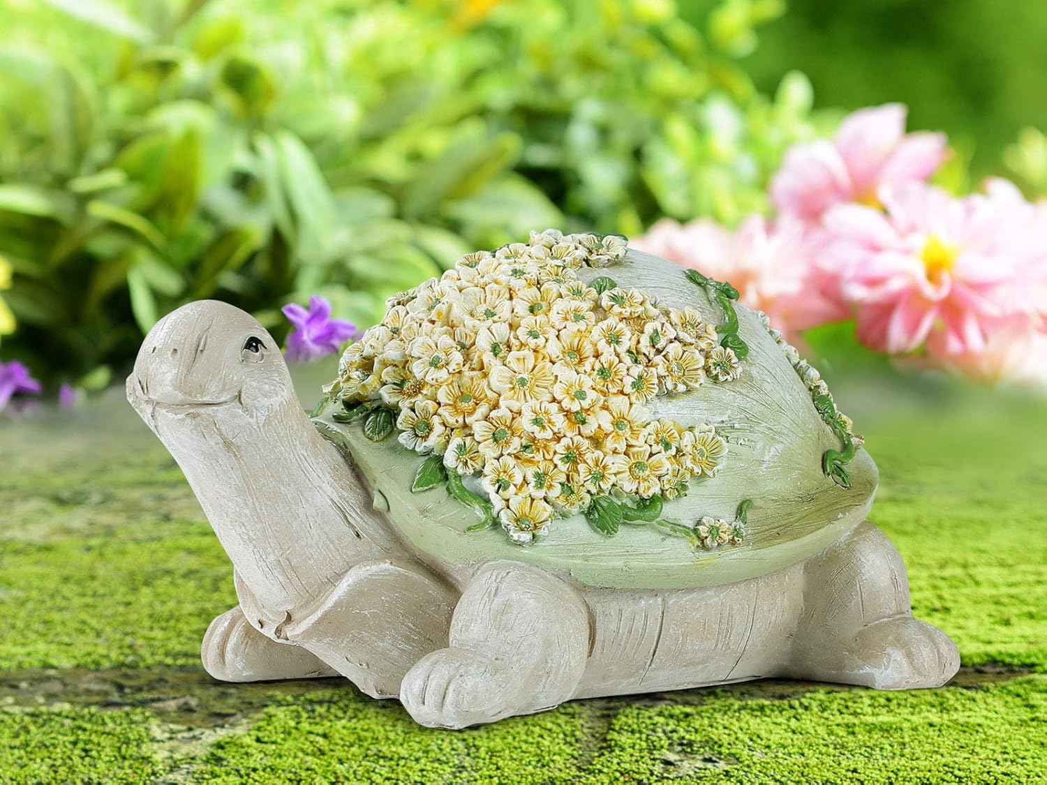 This intricately detailed turtle figurine is solid in top quality resin and portrays wooden grain texture & vivid yellow flowers on the shell. It will likely be an interesting ornamental sculpture within the backyard and the elegant design will give a female contact to your property.