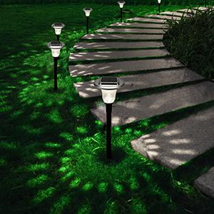 Flip the change to “ON”, these photo voltaic lights will emit heat white lights, present stunning patterns on the grass.