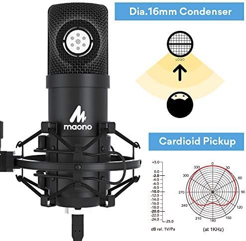 COMPATIBLE WITH ALL OS: For all Laptop computer, PC and Cell phones. However if you would like join with cellphone, you want an OTG adapter (not included). Sturdy output, no distortion, low energy consumption. PACKING LIST: Condenser Mic + Adjustable Scissor Arm Stand + Steel Shock Mount + Pop Filter + Foam Mic Windscreen + Desk Mounting Clamp + USB-B to USB-A Cable, Tripod. MAONO offers 12-month guarantee to guard consumerism