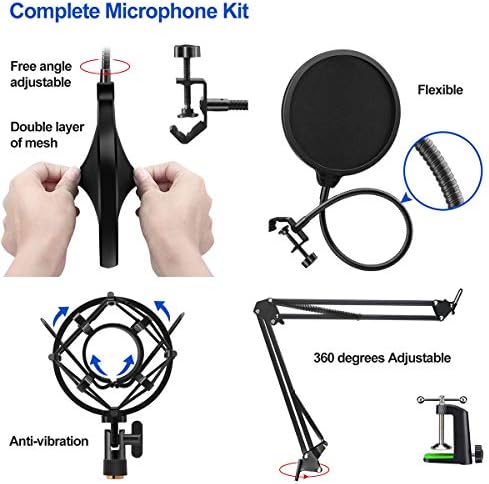 🎤【Full USB Microphone Package】Within the equipment you get the scissor arm Stand- versatile and 360 levels adjustable to realize essentially the most comfy place and angle; anti-vibration shock mount – to keep away from the detrimental results of fixed motion and vibrations; a windscreen, a pop filfter – an added line of protection againest popping and explosive; a USB cable that comes with a ferrite core put in in it. All steel construct this mic set was constructed to final.