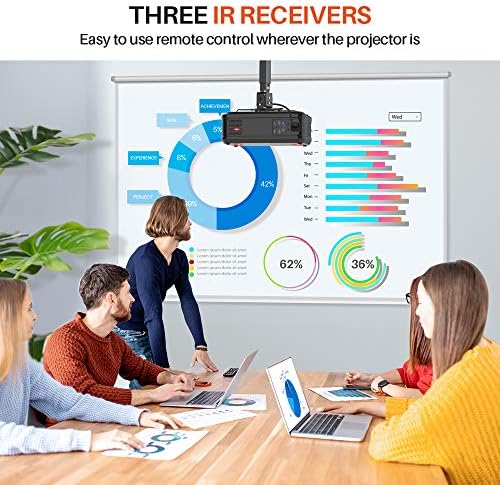 【THREE IR RECEIVERS】With up to date three IR receivers design, Efficiency V620 projector makes it simple so that you can use distant. In contrast with different projector simply have 2 IR receivers, this projector brings you extra decisions and conveninece for residence leisure and presentation.