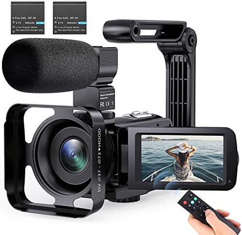 Camcorder with Handheld Stabilizer: Distant controller, anti-shake, Pause Operate, sluggish movement, steady capturing, face seize, self-timer, magnificence perform, auto power-off, as much as 128GB SD card, the tripod ( not included), Mini USB2.0 output, with scorching shoe and exterior mic jack, assist exterior LED Mild (not included).The digicam comes with two batteries.One full-charged battery could be sustainably used for 90-150 minutes.You may file movies whereas charging