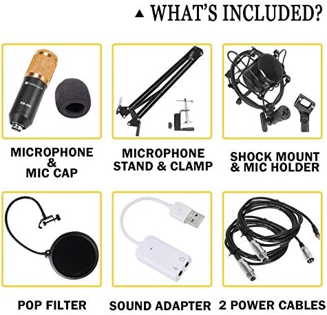 Voilamart Condenser Microphone Set, that includes audio excessive copy and noise discount. It’s good for voice-over, podcast, recording, gaming, Skype and video convention.