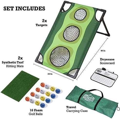 Two (2) TargetsTwo (2) Non-Slip Hitting Mats16 Foam Golf Balls (White, Orange, Yellow and Blue)1 Scorecard (Helps A number of Gamers)1 Journey Carrying CaseAssembly and Recreation Mode InstructionsChallenge your folks to a sport of golf cornhole and see who has one of the best chipping sport round