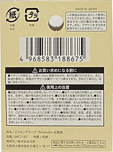 Dimension About 0.6 (W), 236.22 (L) inch (1.5 cm, 6 m) / Materials Tape: Washi (Japanese paper) / Adhesive: Acrylic