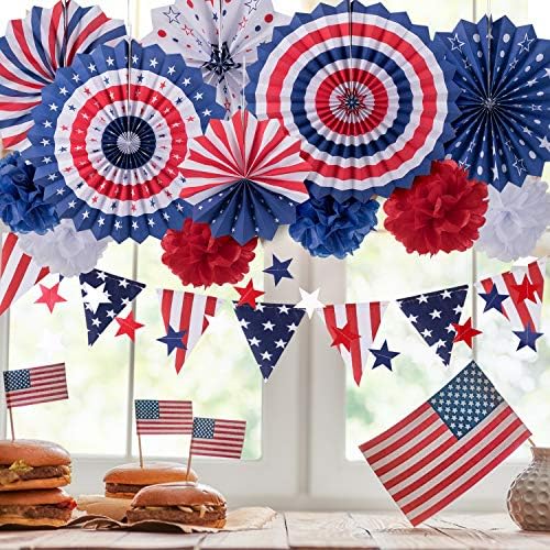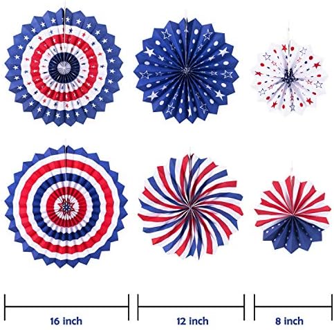 A number of Measurement – The paper followers is available in 3 totally different sizes, 2pcs x 8”, 2pcs x 12”, 2pcs x 14”, 2pcs x 16”; the diameter of paper flower balls is about 20 cm; the size of star streamer is about 2 m; and the USA flag pennant bunting is about 2.9 m in size