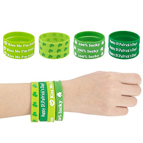 12 Items shamrock wristbands bracelets – 12 items in 4 types, every type comprises 2 packs, the diameter of the wristbands measures 6.5cm / 2.5in, printed with totally different patterns and phrases, cute and appropriate for teenagers and grownup