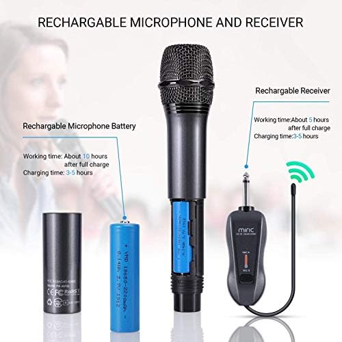♫Rechargeable Mic Set: With built-in lithium-ion rechargeable batteries (Every Mic-2200mAh,receiver-1100mAh), cordless microphones, and receiver function lengthy period. After totally charged, microphones can work about 10 hours and receiver can work about 5 hours.