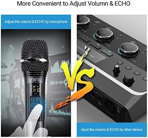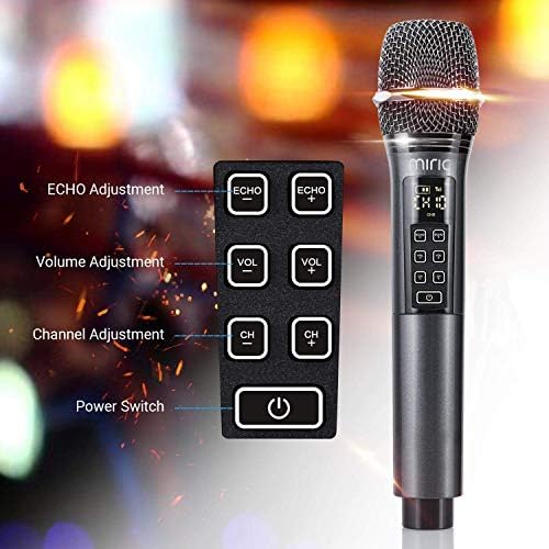 ♫ Fast Vol.&Echo Management: Miric wi-fi mics are outfitted with Quantity and Echo buttons, so you may select totally different microphone sound results in accordance with totally different songs. Help 10 units for concurrently utilizing at most (Every set utilized in totally different channels). Discover: If microphones can’t pair with receiver, simply reset them ( Please learn Person Handbook for particulars).