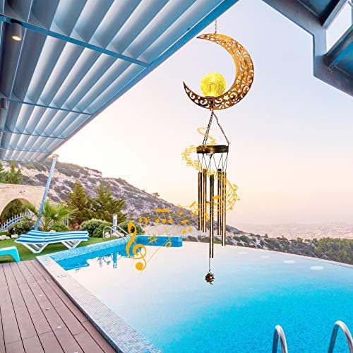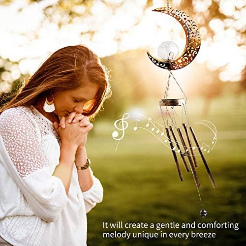 【UNIQUE MOON CRACKED GLASS BALL】The retro photo voltaic wind chime includes a hollowed moon design and a crackle glass ball, which casts a stupendous shadow within the air and add good ambiance. Every steel tube performs an distinctive tone. Nothing could be extra therapeutic than listening to the soothing concert events whereas having fun with the views on the patio.