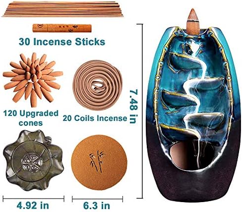 ➤Hand Crafted & Beautiful Package deal: Our ceramic incense burners created by expert craftsmen in conventional fashion with exquisitely handcrafted. So every incense burner has a barely completely different sample and shade. Our Incense Burner Holder include 120pcs backflow incense cones, 30pcs sticks incense,20pcs coils Incense, 3pcs synthetic lotus leaves,1pcs cushion,1pcs mini incense holder,1pcs waterfall incense burner.