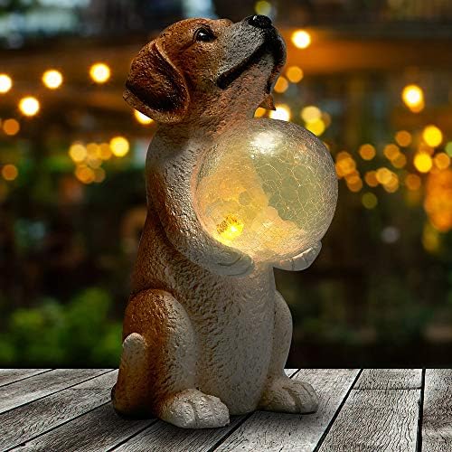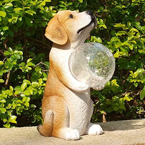 ✿Charming Design For Canine Lovers: Candy and amazingly life-like sitting canine playfully holding a crackled glass globe which have a heat LED gentle inside. This can make the perfect gardeners presents for canine lovers!